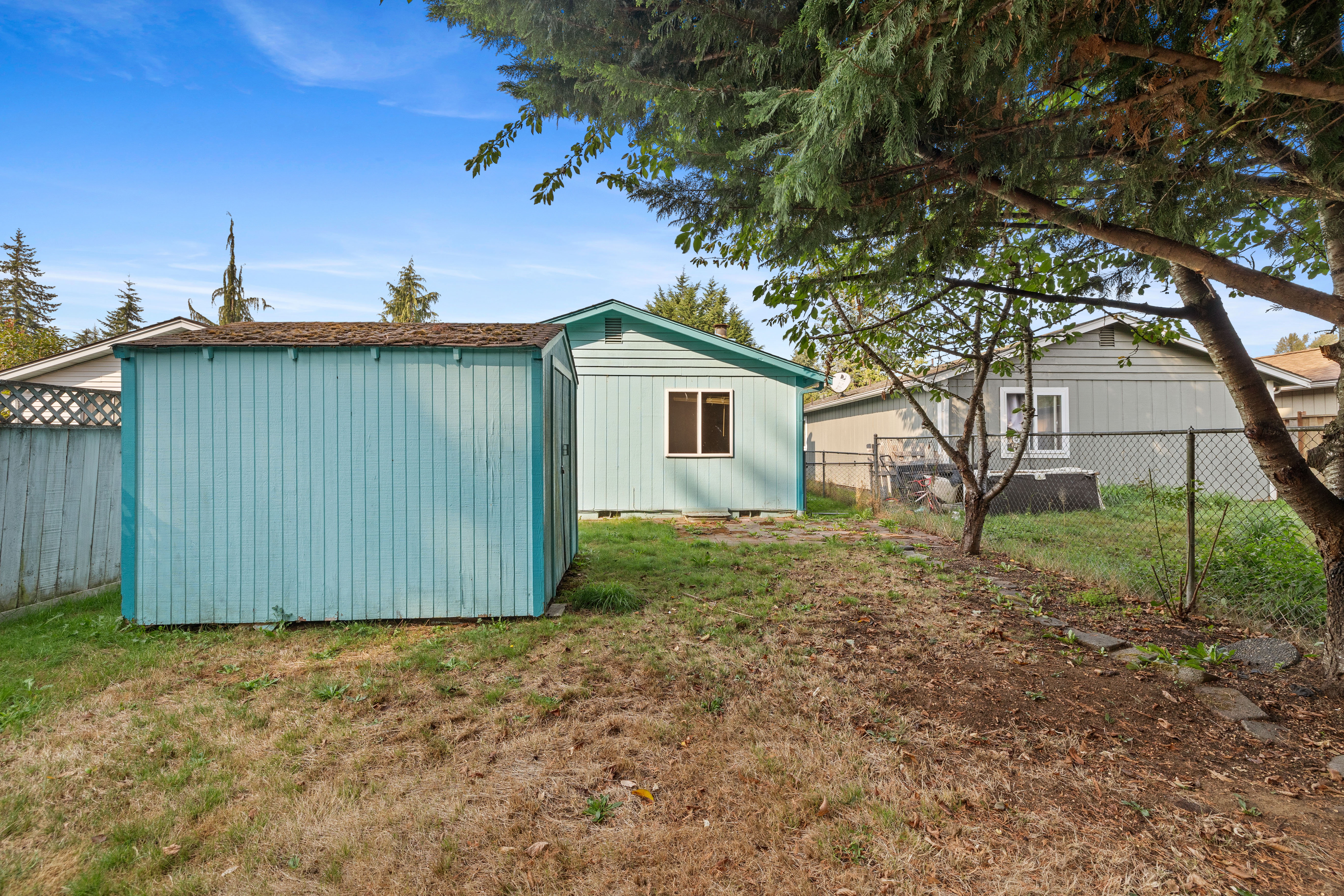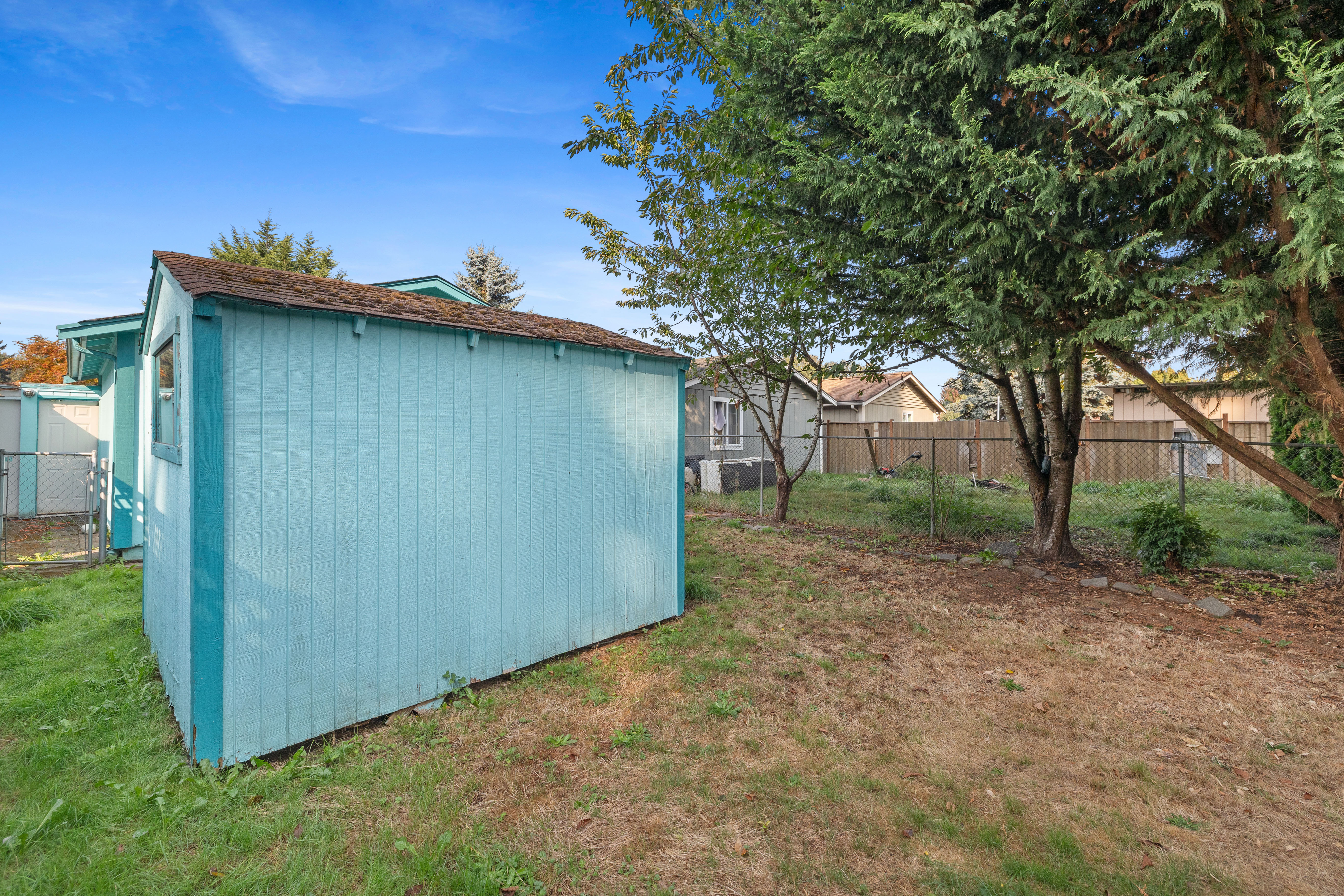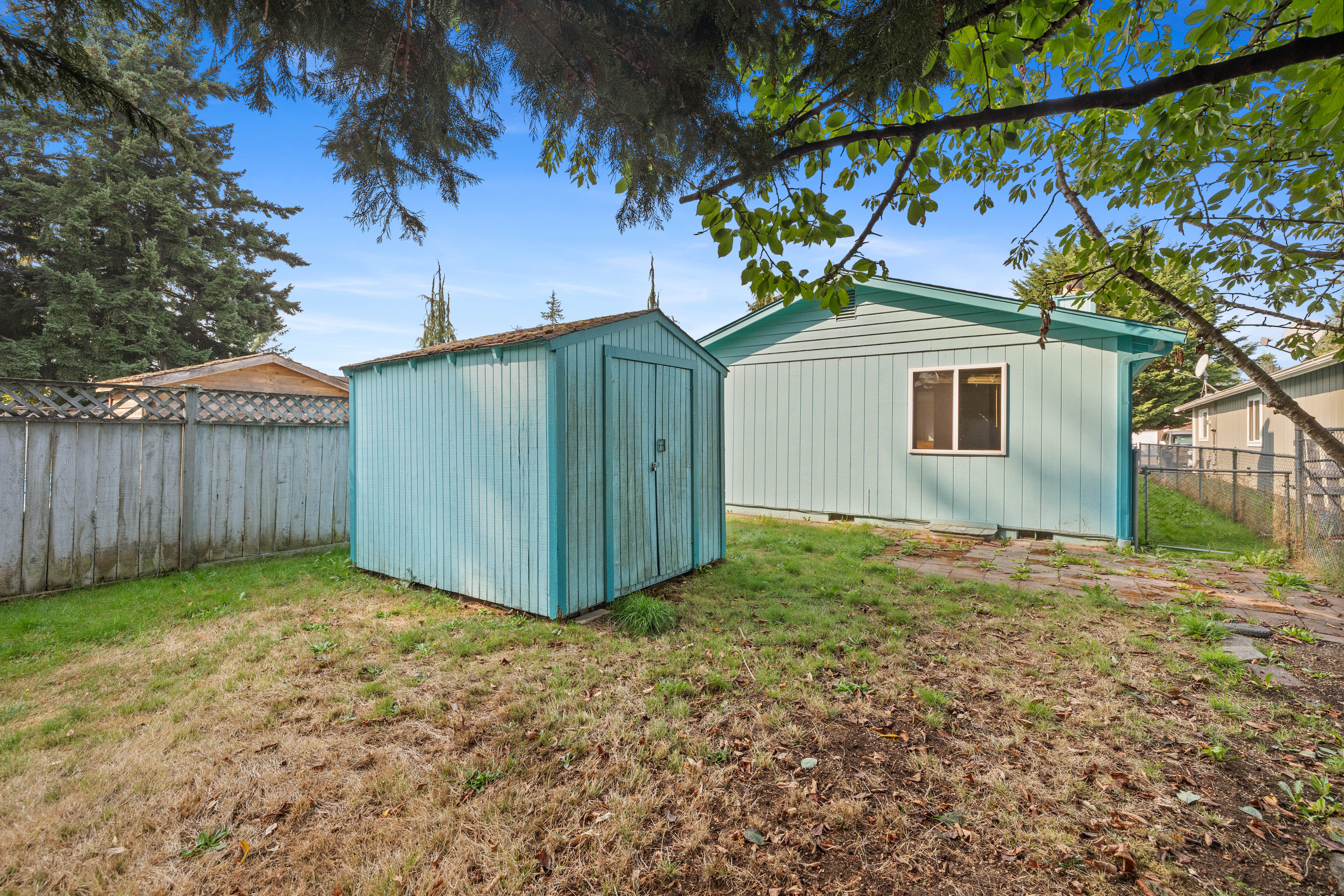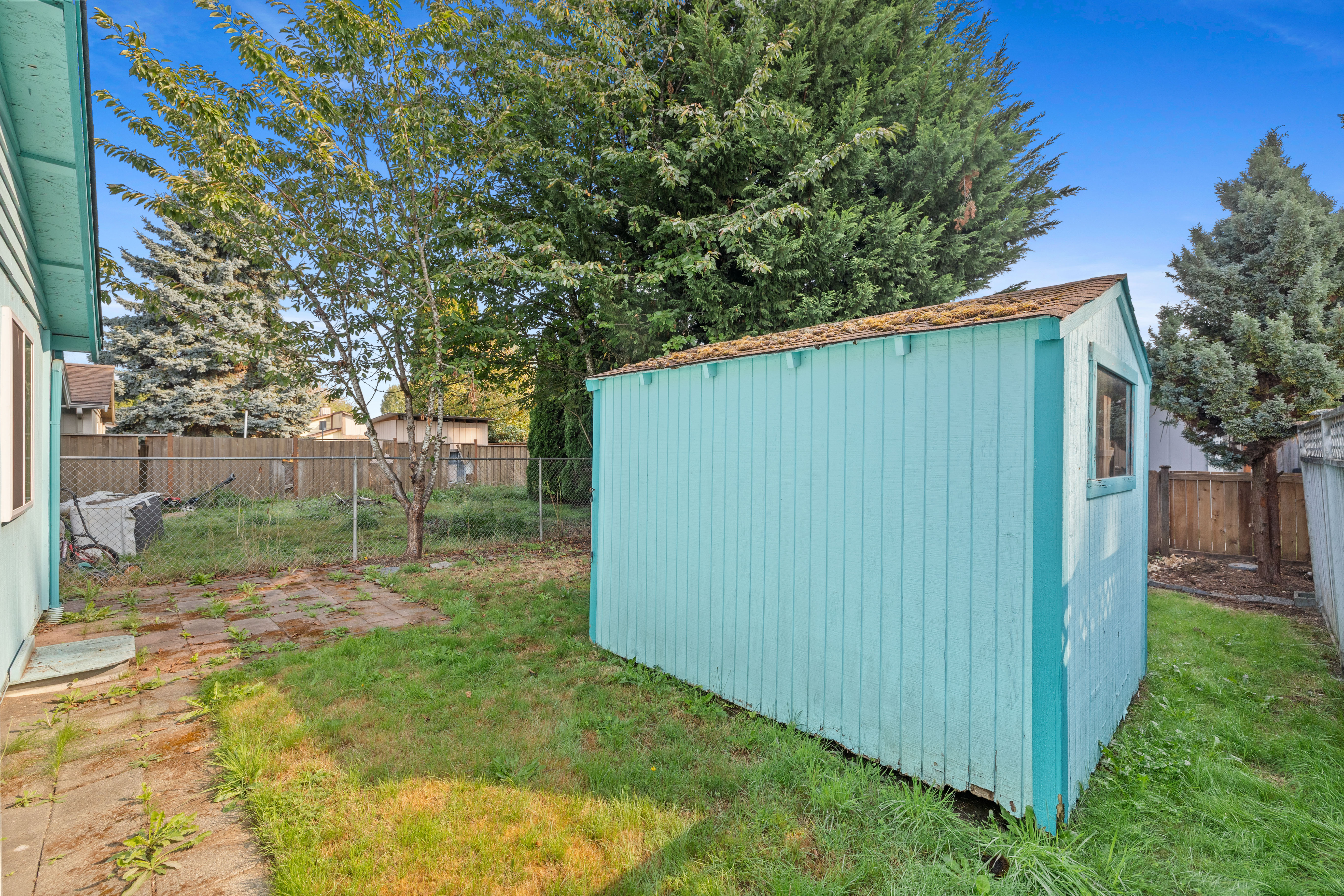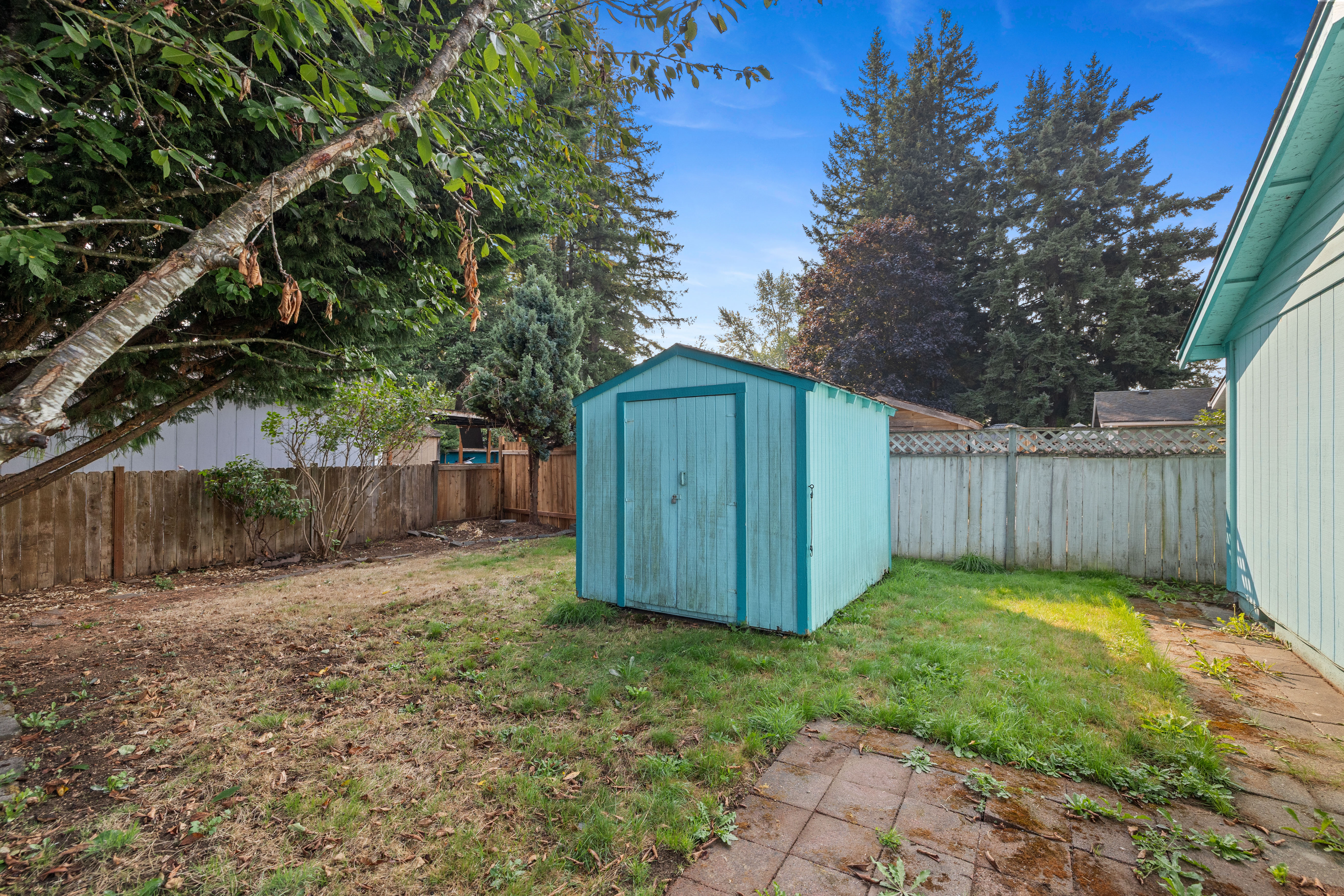 • Fully fenced yard with shed